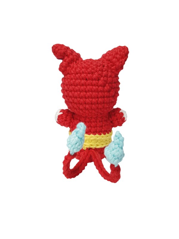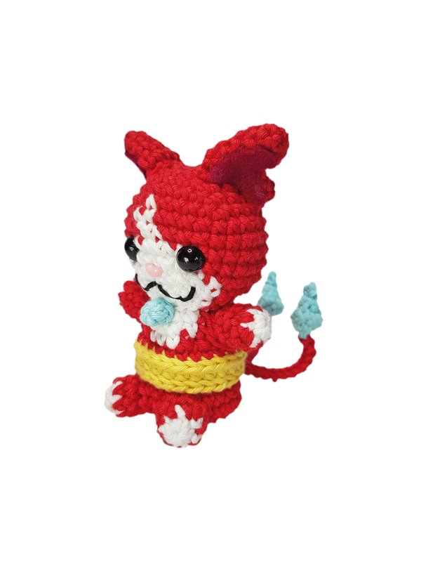 Diese Amigurumi-Figur stellt einen "Katzengeist" aus einer Videospielreihe dar. Der Katzengeist gehört zu einer Art von fiktiven Wesen. Sie sind Geister denen verschiedene Eigenschaften zugeordnet werden, in diesem Fall ist der Charakter eben ein Katzengeist. In dem Videospiel findet der Spieler zunächst eine Uhr mit der er die Wesen sehen kann und sie beschwören kann. Gemeinsam kämpft man gegen böse Wesen oder hilft Menschen, die in Not geraten sind.