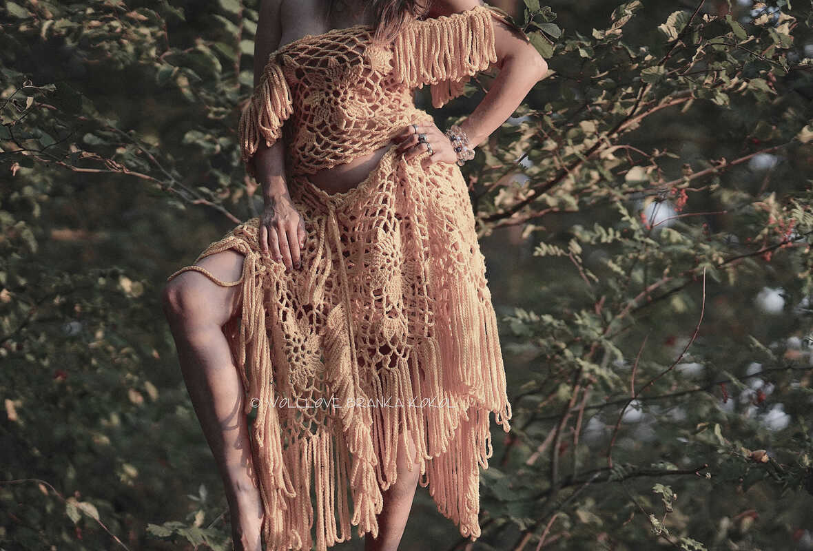 Das fertige Kleid ist ein Ausdruck dieser inneren Ruhe – lebendig, kraftvoll und frei. Mit seiner weichen Haptik, dem tänzelnden Fall und den verspielten Fransen umhüllt es dich wie ein sonniger Sommertag. Du trägst nicht einfach ein Kleid – du trägst deine Zeit, deine Geduld und deine Liebe zur Handarbeit.