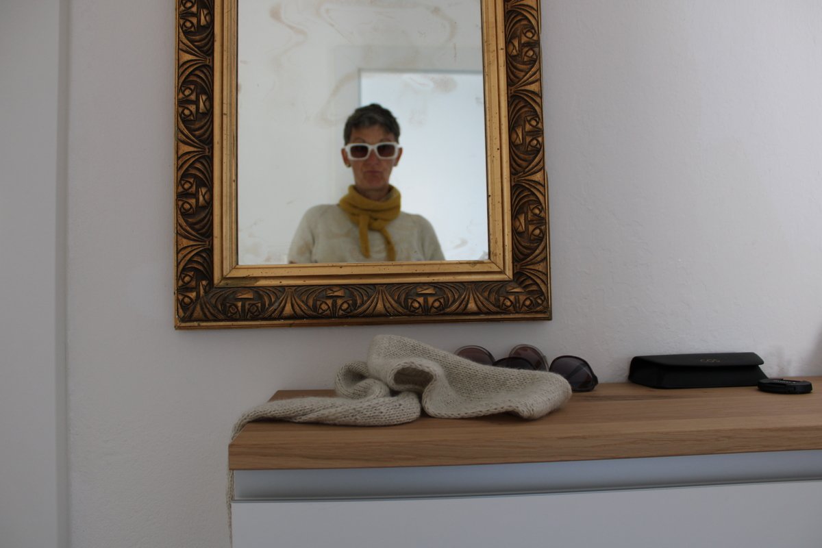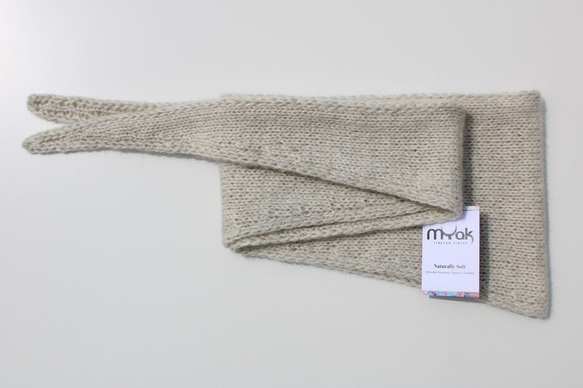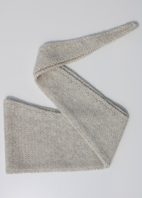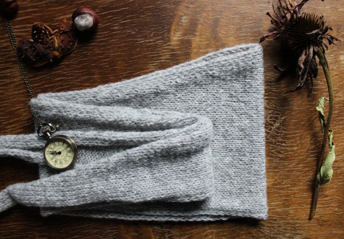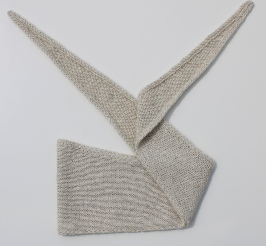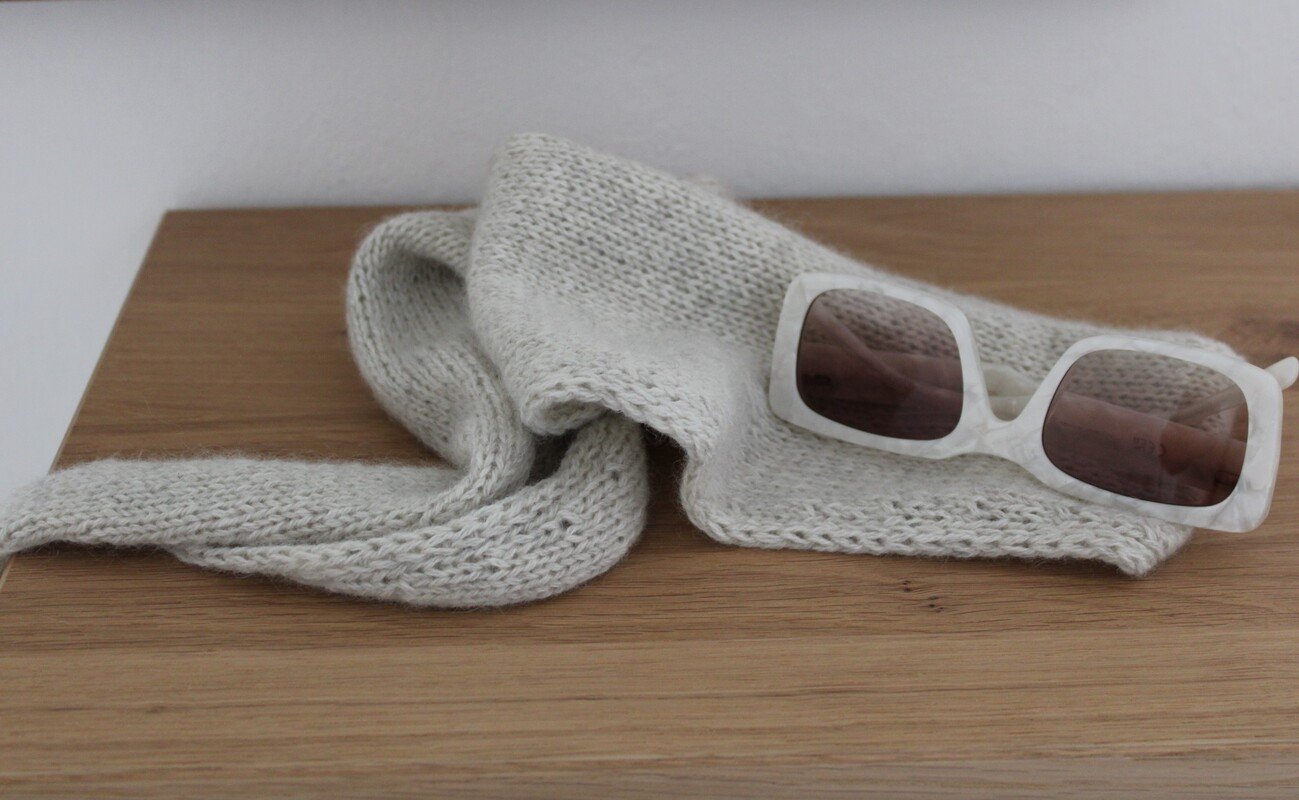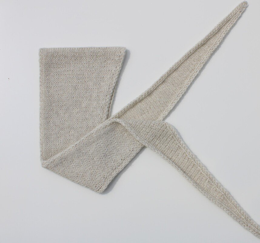 Du kannst diesen kleinen Schal mit jedem Garn stricken. Tilda ist ein schmaler Schal, der in der Mitte etwas breiter ist als an den Zipfeln. Die Ränder werden als Icord gearbeitet. Ich habe meist mit 50 Gramm gestrickt, manchmal auch mit weniger. (Der graue Schal des dreiteiligen Sets in grau-braun wiegt z.B. nur 35g)