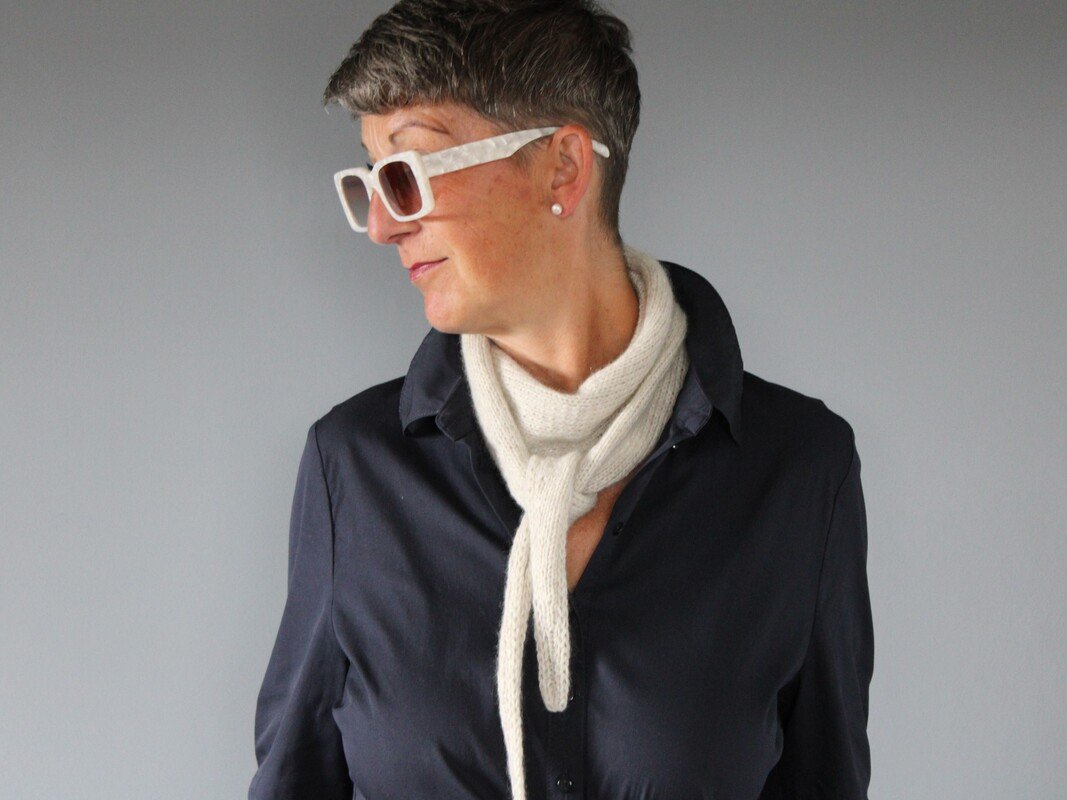 Tilda ist ein schmaler Schal, den du perfekt mit Resten oder 50-Gramm-Knäuel stricken kannst.