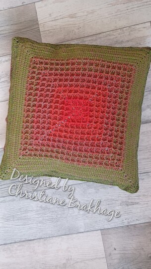 Dieser Kissenbezug "Herbstzeit" wird von der Mitte aus gehäkelt.