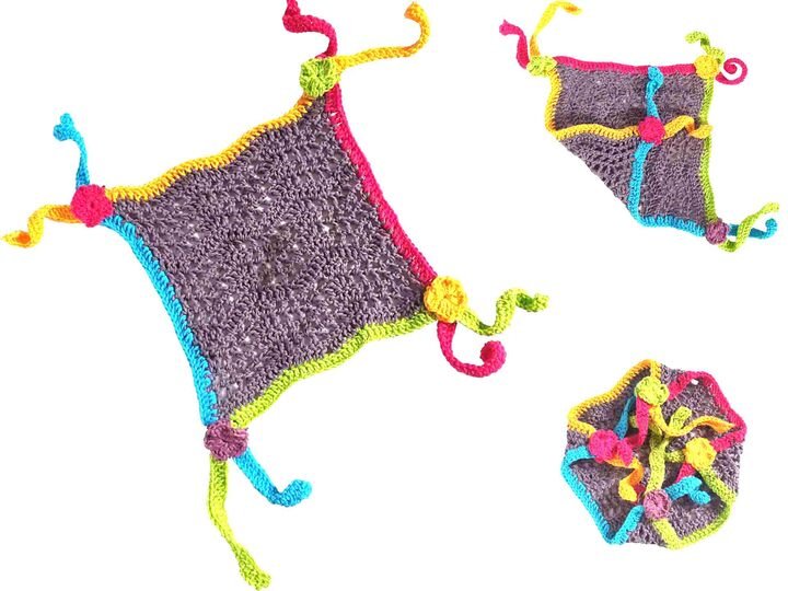 Mit dieser Anleitung zeige ich dir, wie du das kunterbunte, luftige und sommerliche Kuscheltuch / Schnuffeltuch häkeln kannst.