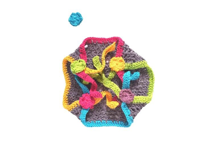 Noch bunter kannst du es gestalten, wenn du die Blumen in noch anderen Farben häkelst.