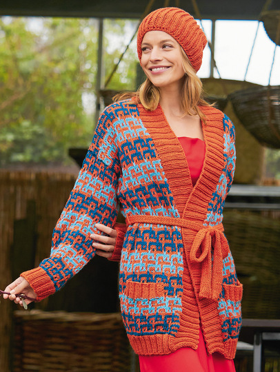 Dieses Set bestehend aus eindrucksvoller Jaquard-Jacke und dazu passender Mütze ist perfekt für kalte Tage. Das Schurwollmischgarn von ONLINE hält dich perfekt warm. Aber auch das Stricken dieser Traumkombination ist alles andere als langweilig. Die Jacke wird in einzelnen Teilen von unten nach oben gestrickt. Dabei ist das Muster gar nicht so schwer wie es aussieht. Durch geschickt plazierte Hebemaschen wird aus einer einfachen Streifenfolge ein plakatives und eindrucksvolles Gesamtbild. Dabei wird lediglich mit einer Farbe pro Reihe gearbeitet. Die Mütze wird mit dem passenden Garn einfach in Runden im Patentmuster gestrickt. Das macht sie schön dick und flauschig.