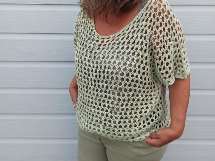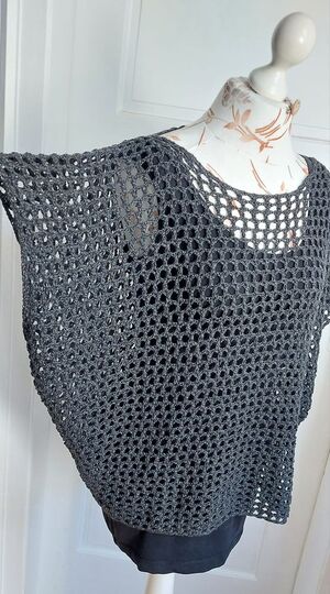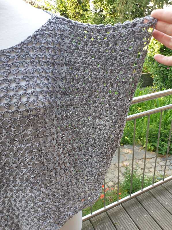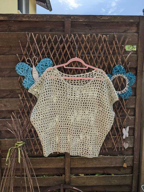 Leider kann ich dazu keine genauere Angabe machen, da jeder anders häkelt und man hier die Größe schön an seinen eigenen Körper anpassen kann. Ein echter Garnfresser ist das Shirt aber nicht.