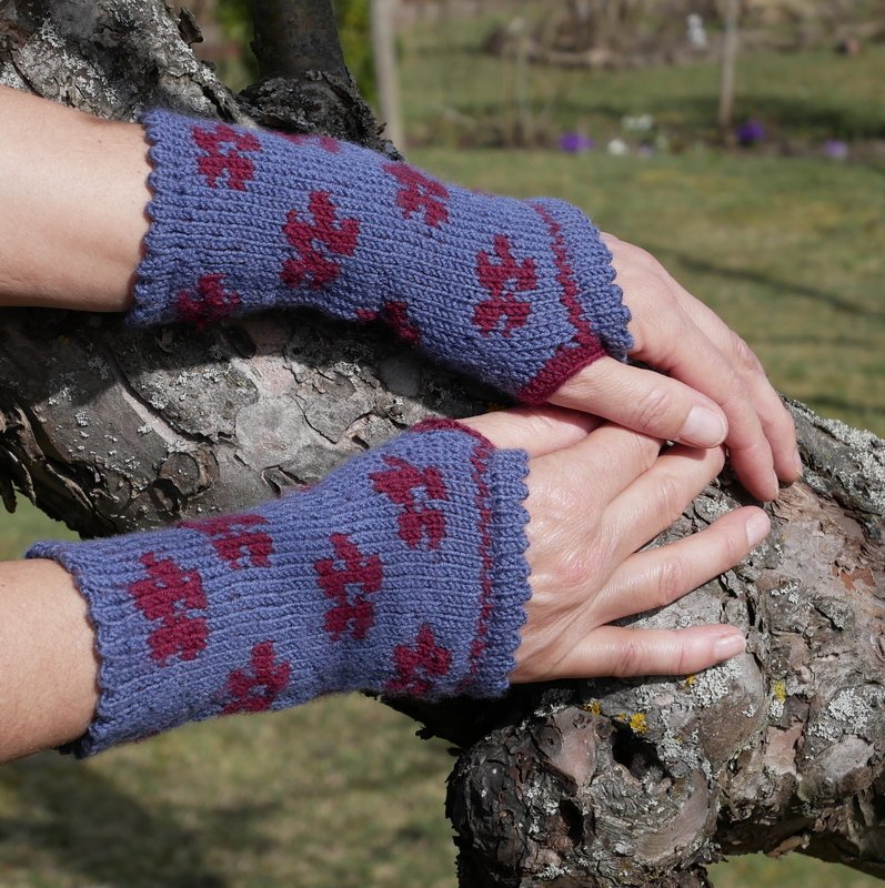 Armstulpen bzw. fingerlose Handschuhe wärmen in kalten Tagen auf wunderbare Weise mehr als nur die Hände und das Blumenmuster dieses Modells zaubert noch dazu ein Lächeln ins Gesicht - finde ich. Und da man wenig Wolle braucht kann man sinnvoll seine Lieblingsreste verarbeiten. Diese gehen über die halbe Hand und haben ein Daumenloch, so dass sie gut sitzen und nicht verrutschen können.