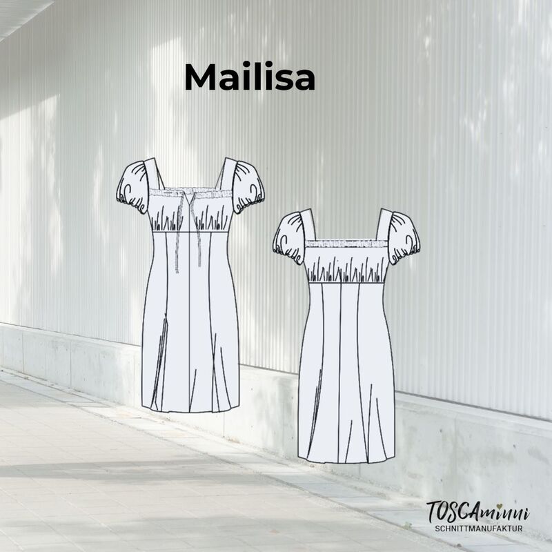 Luftig leicht und romantisch - so beschreibt sich das Schnittmuster für das Kleid Mailisa. Es ist im Empirestil genäht und mit süßen Puffärmeln versehen. Das geraffte Obereil mit dem viereckigen Ausschnit wirkt sehr feminin und der weitschwingende Rock betont die Leichtigkeit.