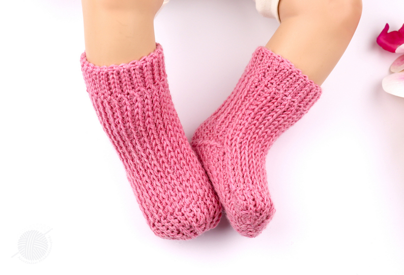 Warme Baby- & Kindersöckchen im Stricklook für Dein Kind oder Enkelkind häkeln, ist mit dieser Anleitung überhaupt kein Problem (für Fortgeschrittene)! Ein senkrechtes Muster im Stricklook, leicht anpassbare Größe machen diese Söckchen zu einem echten Hingucker! Die Socken werden als ein Teil um den Fuß herum, senkrecht, gehäkelt (als ob man ein Blatt Papier um den Fuß herum wickelt). Dabei wird die Ferse am Ende an die Socke angehäkelt. Es entsteht eine Nahtlinie auf der Innenseite der Socke, die sehr platt ist und gar nicht beim Laufen stört. Das Zusammennähen der Socken wird ebenfalls in der Anleitung erklärt.