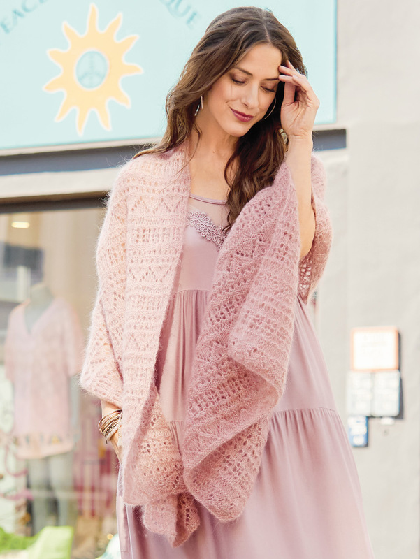 Dieses zauberhafte Tuch ist das perfekte Projekt für Musterfans. Das filigrane Lochmuster entsteht aus Umschlagen und Abnahmen. Das klingt kompliziert, ist es aber gar nicht. Das Garn von LANA GROSSA ist kuschelig weich und gleichzeitig luftig leicht. Gestrickt wird mit der Nadelstärke 4. Das zarte Muster ist spannend zu stricken aber gleichzeitig nicht zu anspruchsvoll. Die in der Anleitung enthaltene Strickschrift ist übersichtlich und macht das Nacharbeiten so ganz einfach. Das fertige Tuch passt mit einer Größe von 60 x 180 cm perfekt als Überwurf an einem kühlen Tag und ist gleichzeitig elegant und durch den Mohairanteil im Garn wärmend.