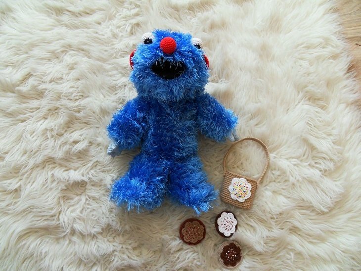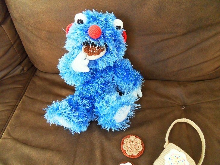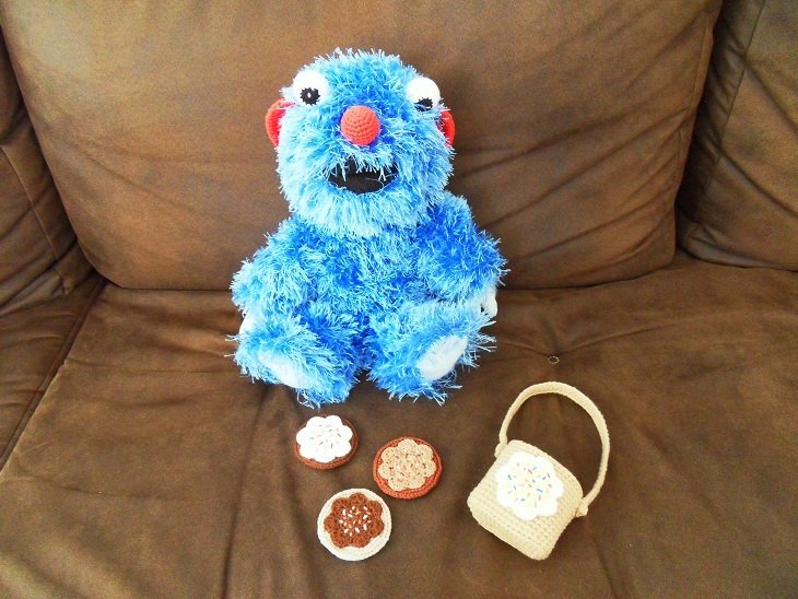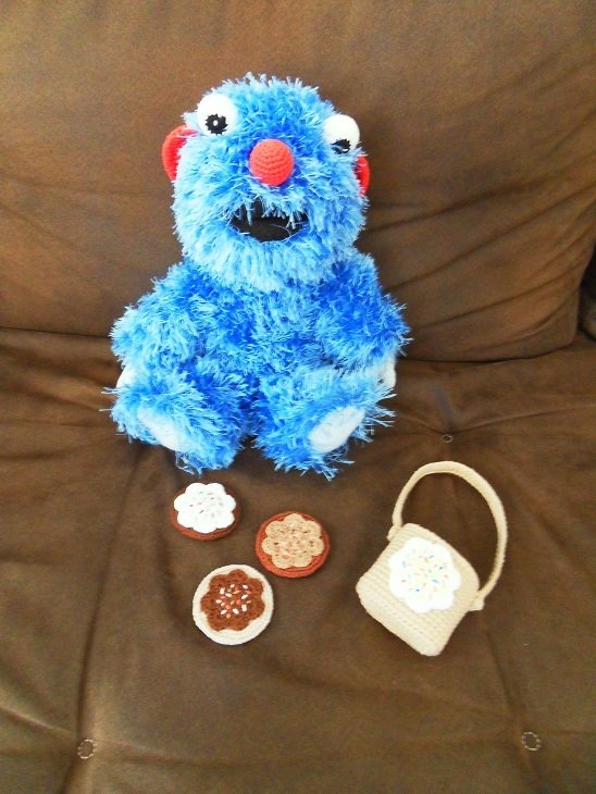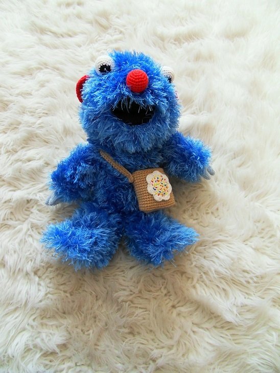 Hallo ich bin das kleine blaue Monster, ich liebe es Blödsinn zu machen. Ich kuschle und schmuse sehr gerne. Natürlich habe ich meine Lieblingsspeise immer dabei. Ich liebe Kekse. Man kann mich bürsten und waschen. Ich bin mittelschwer zum nach stricken und häkeln. Mein Frauchen hat sich sehr große Mühe gegeben mich so gut wie möglich zu beschreiben. Mit einigen Vorkenntnissen beim Stricken und häkeln sollte es kein Problem mehr sein.