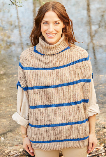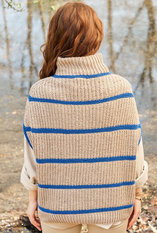 Lässigkeit ist Trumpf! Mit diesem tollen Oversize-Pullunder kannst du jede Alltagshürde problemlos überstehen. Vorder- und Rückenteil werden separat von untern nach oben gearbeitet. Der kuschelige Rollkragen wird zum Schluss angestrickt. Die starke Schulterschrägung ist perfekt für einen lockeren Sitz deines neuen Lieblingsteils. Auch wer das erste Mal mit zwei Farben arbeiten möchte, hat hier das perfekte Projekt gefunden. Durch das Halbpatent-Muster wird der Pullunder richtig dick und flauschig.Das sieht nicht nur schick aus, sondern hält auch noch warm. gestrickt werden kann ich den Größen 36 - 42, 44 - 48 und 50/52. Du kannst nach dem Download direkt beginnen.