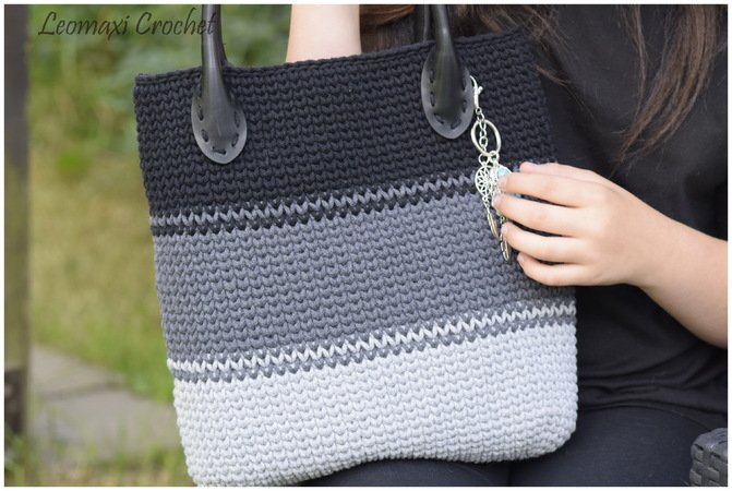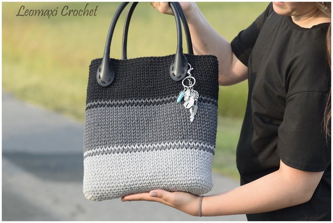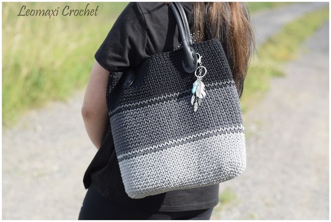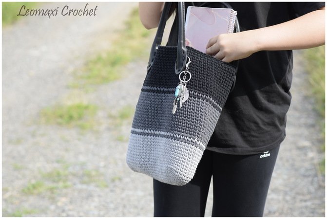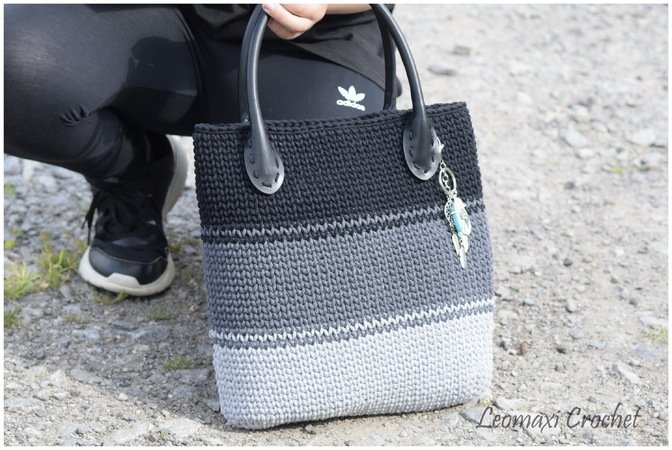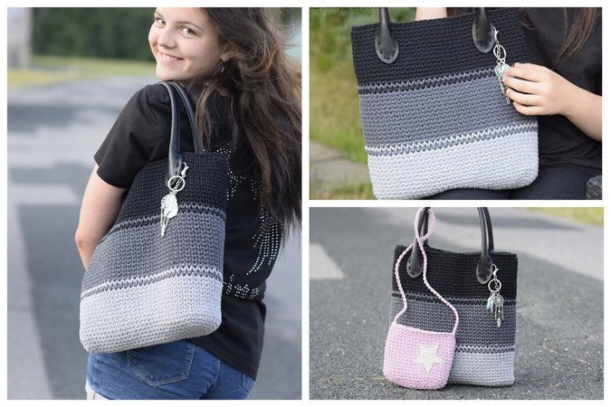 Ich habe mich hier für das Muster im Strickstich entschieden, da das besonders stabil und robust wird und so eine schöne strapazierfähige Tasche entsteht, die formstabil ist und alles mitmacht. Die Größe ist perfekt für ein paar Bücher und somit auch für Schule oder Büro geeignet. Die schlichten Farben und die edlen Ledergriffe machen sie zu einem klassischen Begleiter, der zu jedem Outfit passt. Meine kleine Tochter hat noch keine gehäkelte Tasche von mir bekommen, aber dem habe ich auch gleich Abhilfe geschaffen und ihr eine kleine Version der BONNIE in ihrer Lieblingsfarbe gezaubert.