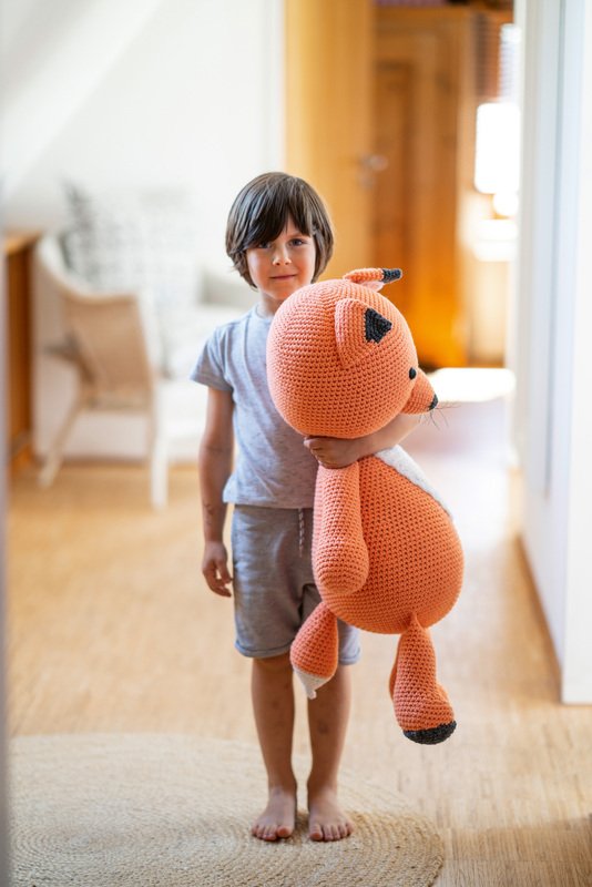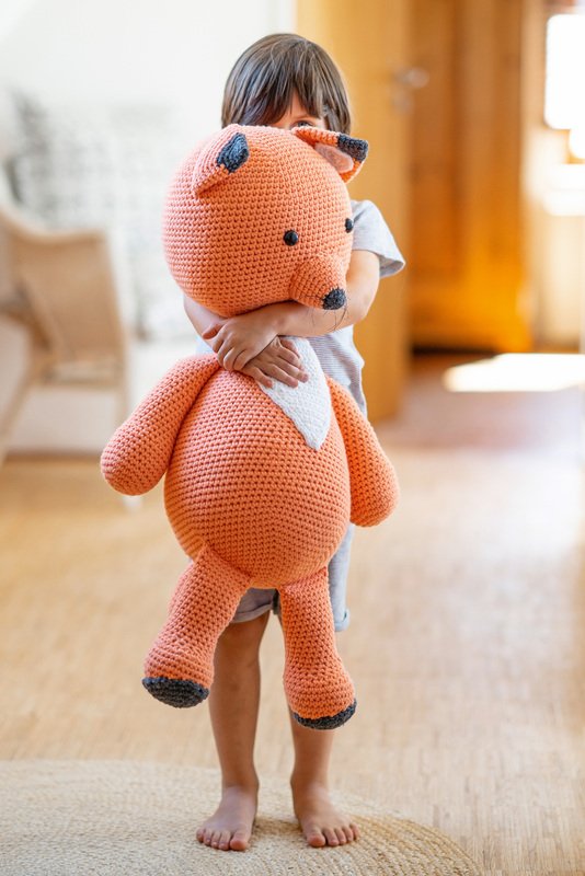 Big Buddies - Das sind XXL-Amigurumis, oder auch riesen Kuscheltiere, die das Kuschel-Erlebnis der Kinder auf ein neues Level bringen. Mit den süßen Tieren kann aber nicht nur wunderbar gekuschelt werden, zum Spielen sind sie auch perfekt geeignet! Da sie so gut wie auf Augenhöhe mit kleinen Kids sind, ist es ein ganz anderes Spiel-Erlebnis als mit herrkömmlichen Kuscheltieren. Dieser Big Buddy ist ein süßer Freund für jedes Kinderzimmer. Der knuffige Fuchs kann super gut zum Spielen und auch zum Kuscheln genutzt werden.