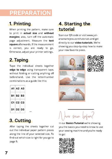 Die Video-Anleitung zum Schnittmuster findest du auf unserer Website unter Tutorials. Falls du noch nie genäht hast, schau dir als erstes unser Nähmaschinen-Grundlagen Video-Tutorial an. Dort lernst du die Bestandteile einer Nähmaschine kennen und lernst deine erste Naht zu fertigen.