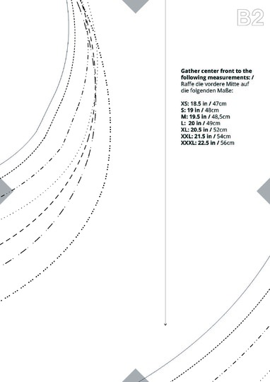 Die Größen XS-XXXL sind als Schnittmuster enthalten. Die genauen Maße der Größen könnt ihr der Größentabelle in den Bildern entnehmen.