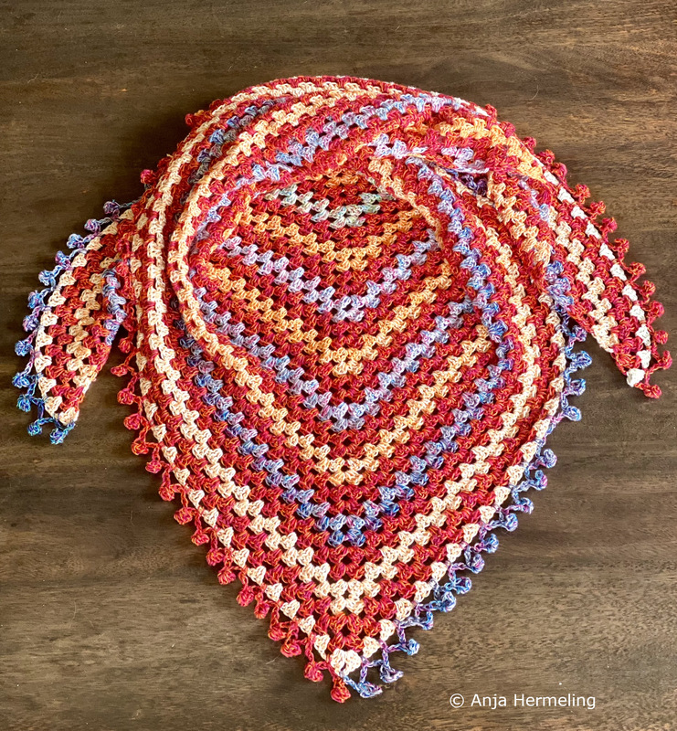 Dieses Tuch ist absolut meditativ zu häkeln. Da mehrere Farbverlaufsgarne abgewechselt werden, bleibt das Projekt trotzdem spannend. Ein prima Anfänger-Tuch oder geeignet für jeden, der einfach mal nur entspannt häkeln möchte.