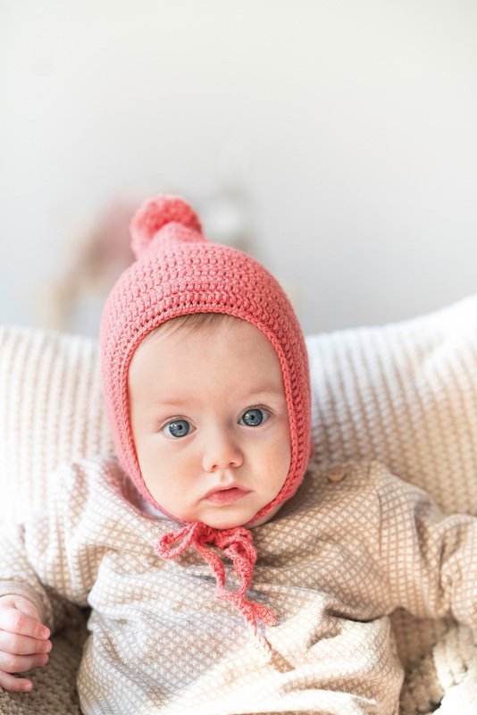 Die Mütze kann in drei verschiedenen Größen gehäkelt werden: 50/56, 62/68 und 74/80