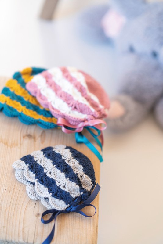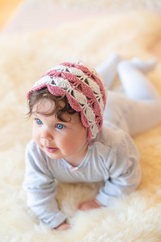 Jede Mama weiß: von kleinen, süßen Baby-Mützen kann man nie genug haben! Die kleinen Mützen sehen nicht nur super niedlich aus, sie schützen das kleine Köpfchen der Neugeborenen auch vor Wind und Wetter. Die Mützen eignen sich auch perfekt als Geschenk zur Geburt, Taufe oder Weihnachten. Mit ihren vielfältigen Mustern und Farben bereiten die Mützen nicht nur den Babys eine Freude. Auch die Mamas können gar nicht genug von den süßen Accessoires bekommen. Dieses Modell ist ein zartes Bonnet, welches in zwei Farben gehäkelt wird. Durch das aufwendig erscheinende Muschelmuster und das Satinband wirkt es besonders elegant. Ein echter Hingucker und auch traumhaft schön für besonderere Anlässe!