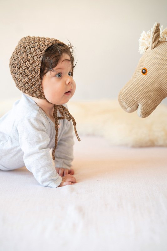 Jede Mama weiß: von kleinen, süßen Baby-Mützen kann man nie genug haben! Die kleinen Mützen sehen nicht nur super niedlich aus, sie schützen das kleine Köpfchen der Neugeborenen auch vor Wind und Wetter. Die Mützen eignen sich auch perfekt als Geschenk zur Geburt, Taufe oder Weihnachten. Mit ihren vielfältigen Mustern und Farben bereiten die Mützen nicht nur den Babys eine Freude. Auch die Mamas können gar nicht genug von den süßen Accessoires bekommen. Dieses Modell ist eine süße Bonnet Baby-Mütze. Durch das Flechtmuster wirkt sie eher etwas rustikaler und ist auch etwas dicker, wodurch sie warm hält. Die Mütze eignet sich also auch gut für Tage an denen mal ein etwas frischerer Wind weht.