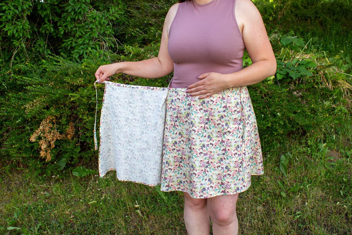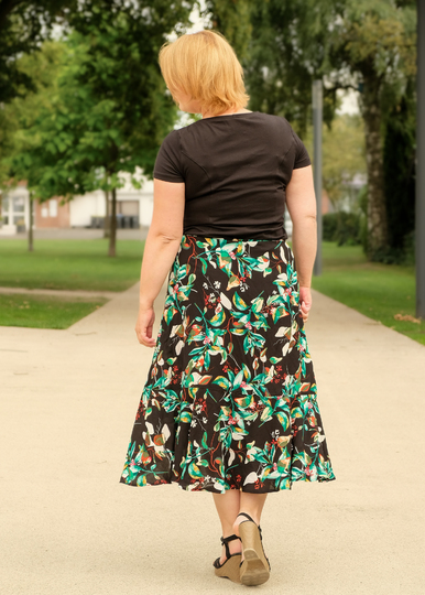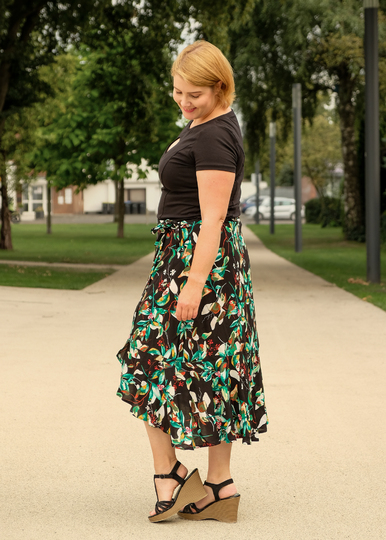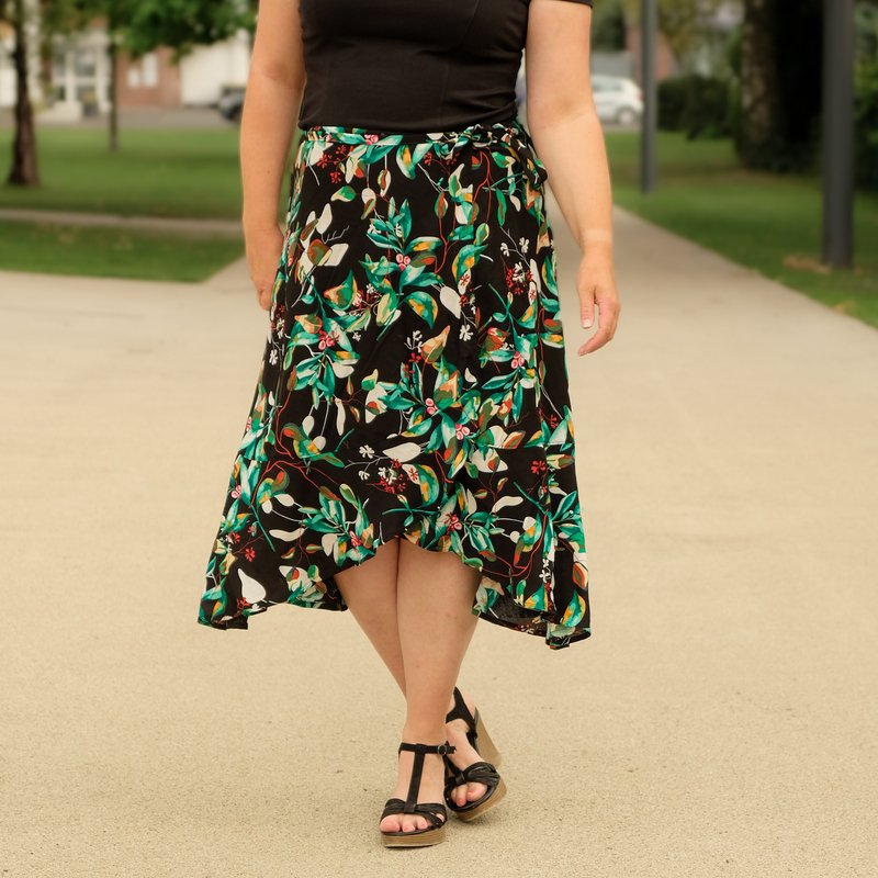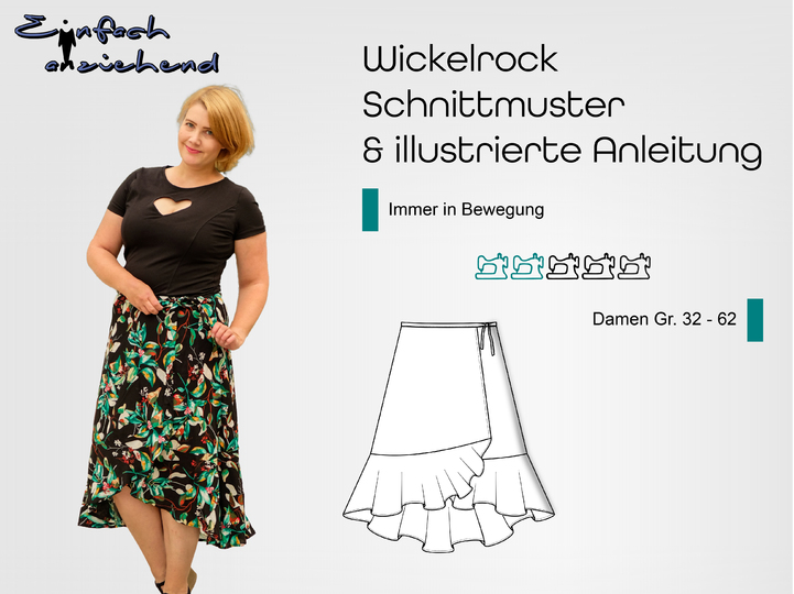 Zusammengefasst: Dieser Schnitt bietet dir einen Wickelrock mit 3 Varianten, einer gerade, einer runden und einer mit Volant.