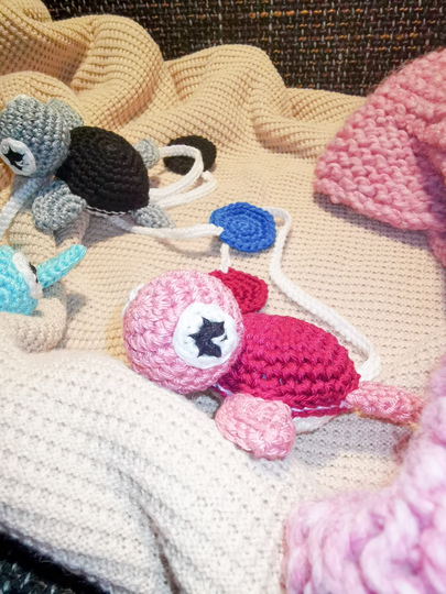 (die angegebenen sind nur beispielhaft und die Mengen sind Näherungswerte und können je nachdem wie locker oder fest du häkelst abweichen!)