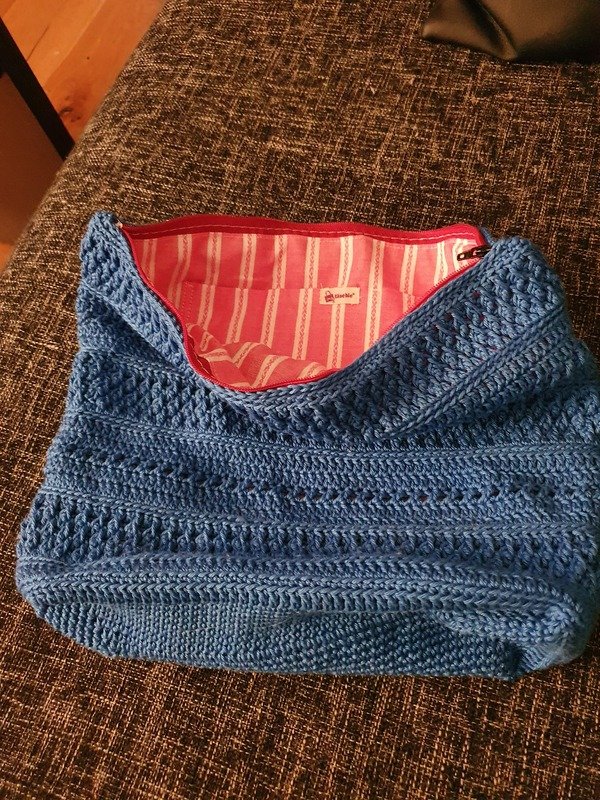 Ich arbeite meine Taschen immer mit einem Stoffinlay, damit die Tasche nicht mit der Zeit ausleiert. Die Tasche kann natürlich auch ohne Inlay und Reisverschluss gearbeitet werden.