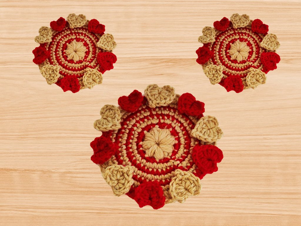 Es wird erklärt: 5 Häkelanleitung für Ein quadratischer Untersetzer Seiten, Beschreibung, Abbildungen.
