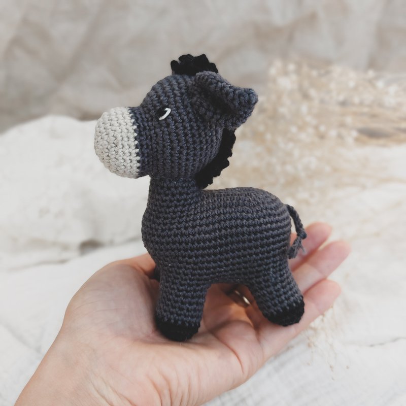 Häkel dir ganz einfach deinen eigenen kleinen Zwergesel. Er eignet sich super als kleines Geschenk und its der ideale Begleiter in kleinen Kinderhänden.