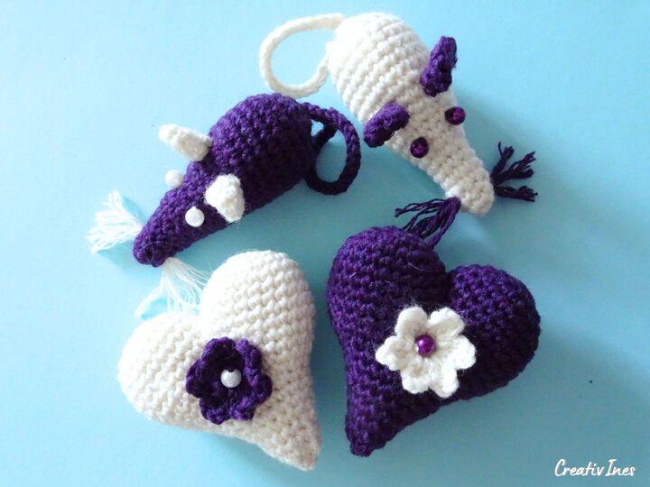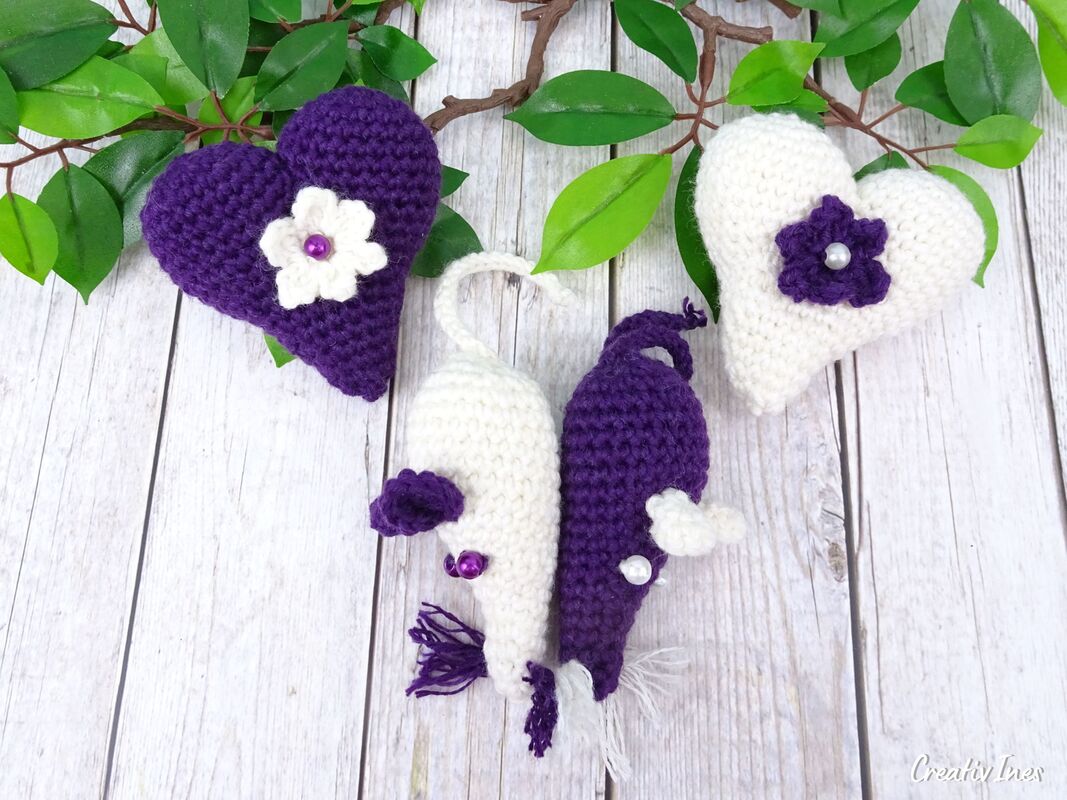 Häkele deine eigenen Herzen und Spitzmäuse und verschenke sie an alle, die du gern hast. Tolle Idee zum Muttertag oder zur Hochzeit, denn wenn du die beiden Mäuse zusammenlegst, bilden sie ein Herz.