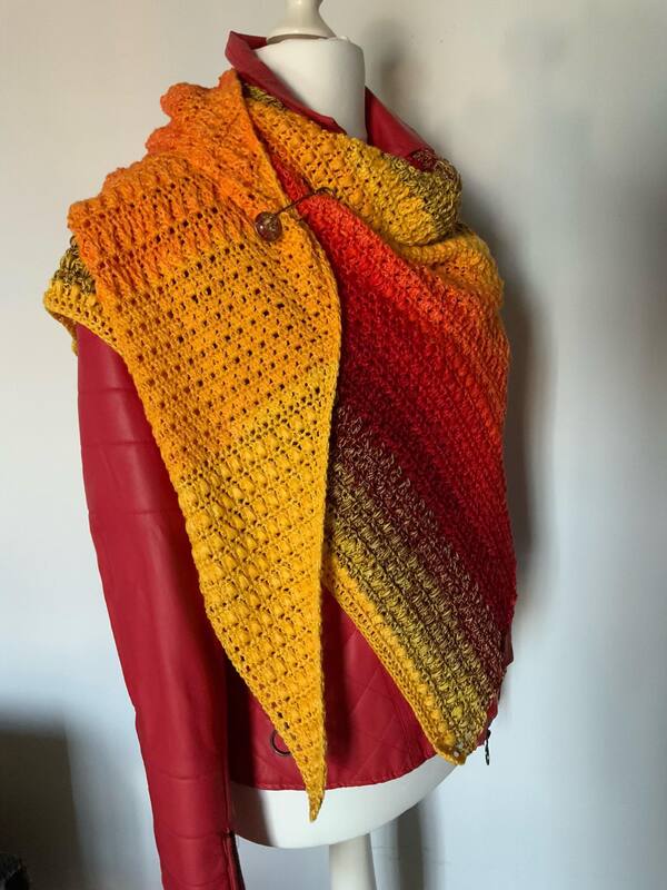 Mit dieser Anleitung kannst du dir ein hübsches asymetrisches Dreieckstuch häkeln.