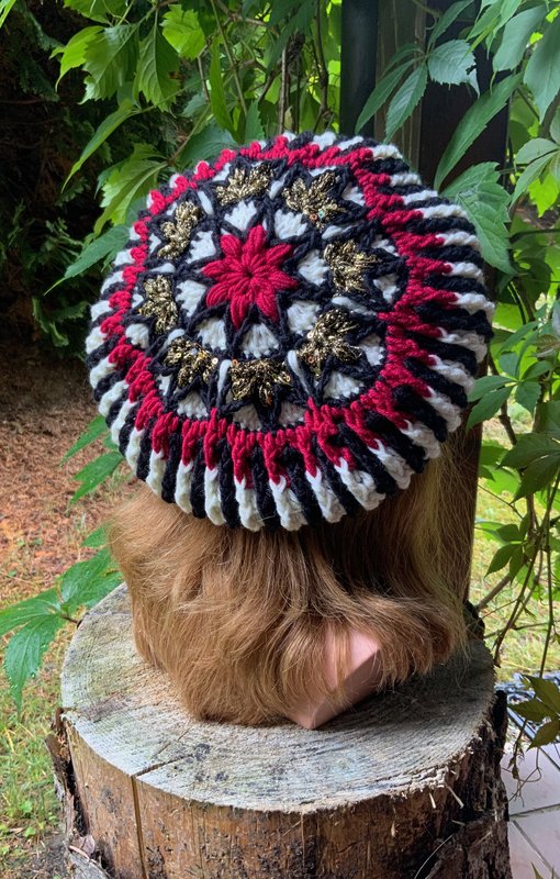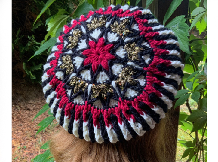 Die hübsche Baskenmütze Weihnachtsstern, ist eine prima Bereicherung für Deine Winterkleidung...Baskenmützen sind schon immer sehr kleidsame Kopfbedeckungen.