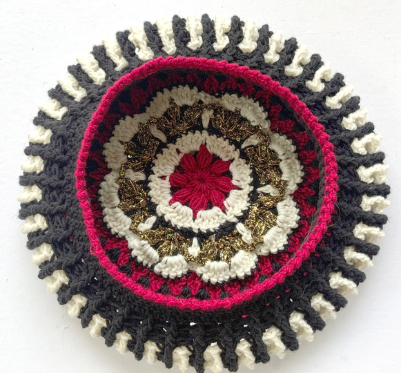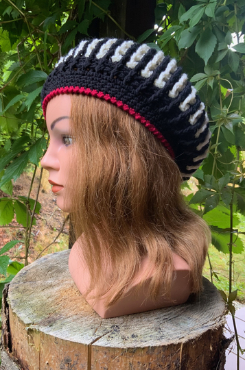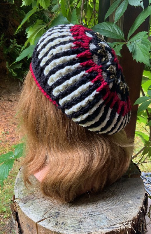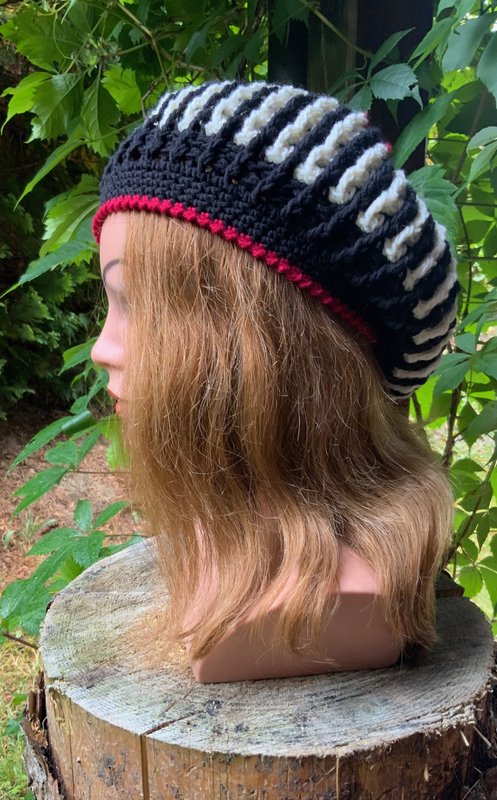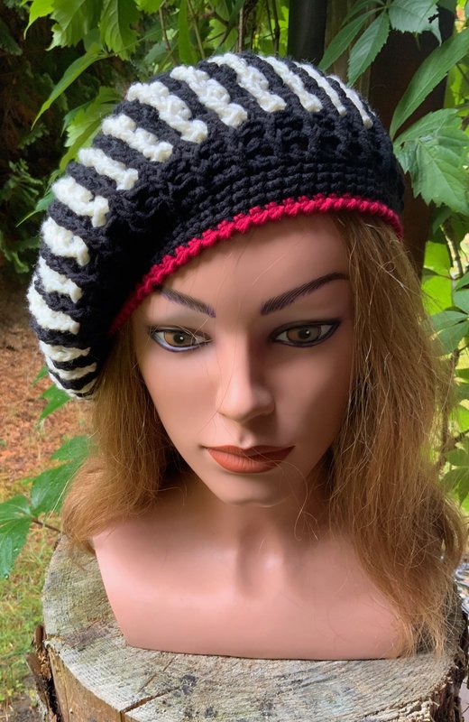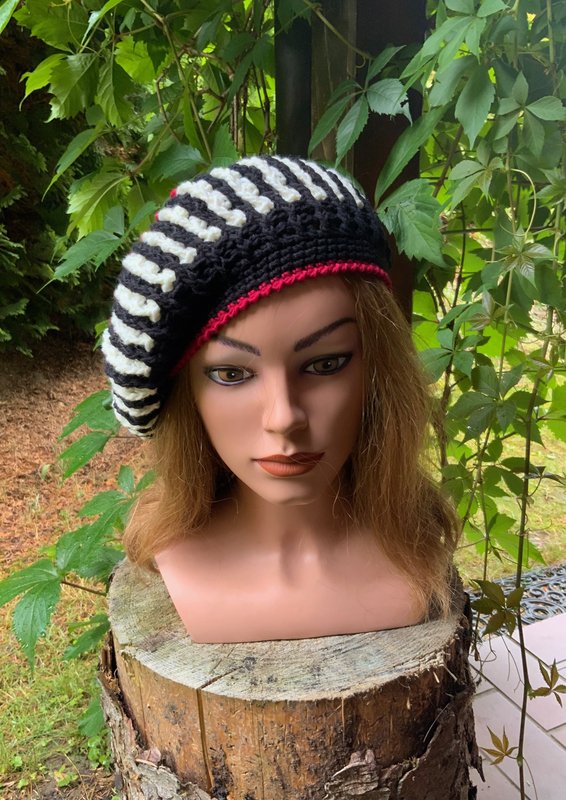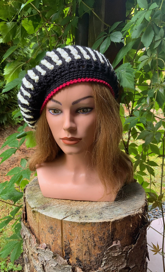 die Baskenmütze hat einen Durchmesser von 27cm und wiegt 110 gr Wolle.