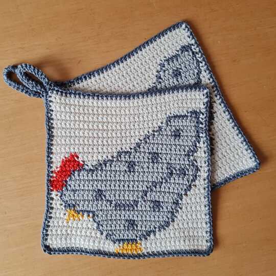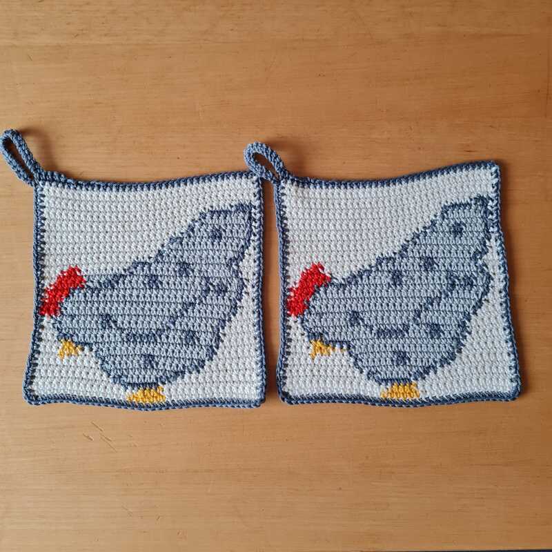 Mit der von mir verwendeten Wolle hat der Topflappen eine Größe von ca 20cm x 20cm.