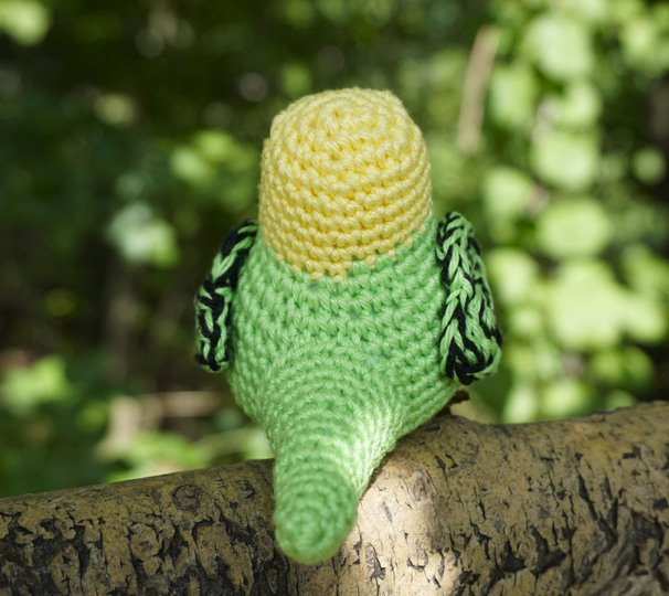 Häkelanleitung für das Wellensittich Baby Kiwi.
