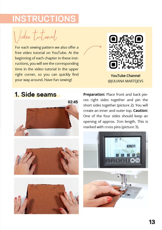 Die Video-Anleitung zum Schnittmuster findest du auf unserer Website unter Tutorials. Falls du noch nie genäht hast, schau dir als erstes unser Nähmaschinen-Grundlagen Video-Tutorial an. Dort lernst du die Bestandteile einer Nähmaschine kennen und lernst deine erste Naht zu fertigen.