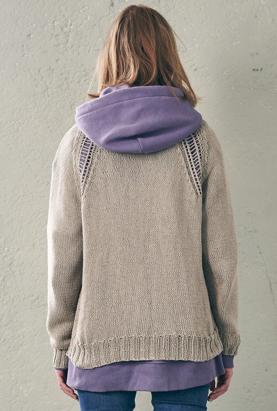 Manchmal muss es einfach „mindless knitting“ sein. Ein Projekt, bei dem die Gedanken schweifen können oder die Lieblingsserie nebenher geschaut werden kann – dann wird es Zeit für ein unkompliziertes Projekt, dass den Händen Beschäftigung bietet und dem Kopf Erholung. Zumal ein schlichter, unaufgeregter Sweater immer eine gute Ergänzung der Garderobe ist. Bei diesem Design wird die Schlichtheit lediglich durch eine kleine, einfach zu strickende Ajourbordüre unterbrochen, die die moderne Raglanlinie in Szene setzt. Gestrickt mit Nadelstärke 4,5 in Einzelteilen von unten nach oben geht es zudem angenehm zügig voran. Nachdem alle vier Teile fertig gestrickt sind, werden noch die Nähte geschlossen und aus dem Halsausschnitt der Kragen in Runden herausgestrickt.