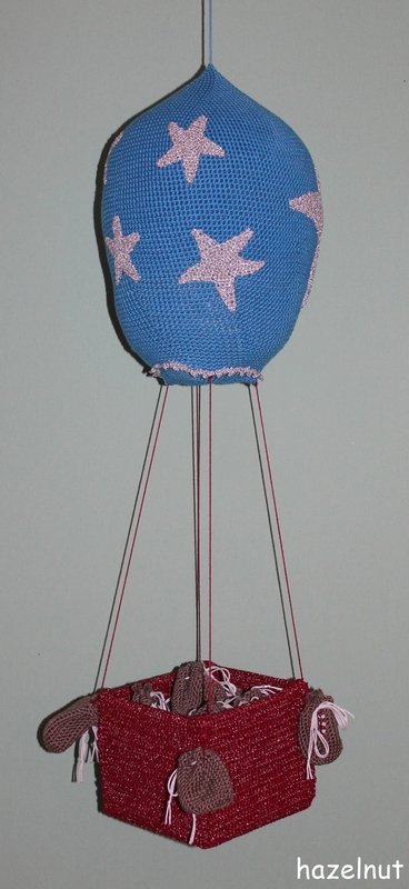 Gehäkelt mit Schachenmayr Catania und einer Häkelnadel Gr. 2 wird der Heißluftballon ca. 32 cm groß. Der Adventskalender wird insgesamt ca. 80 cm groß.