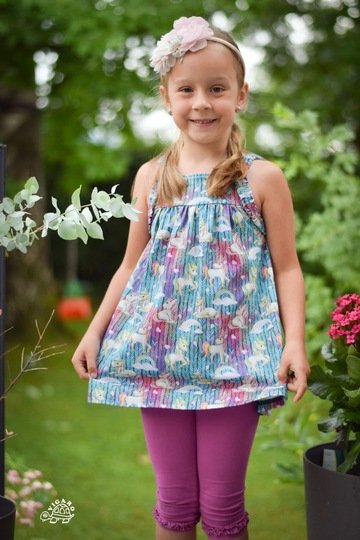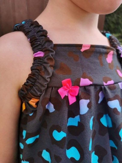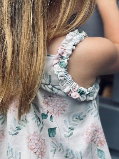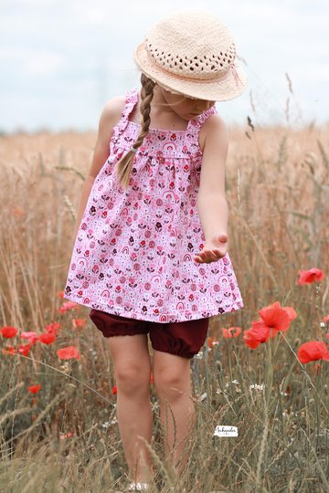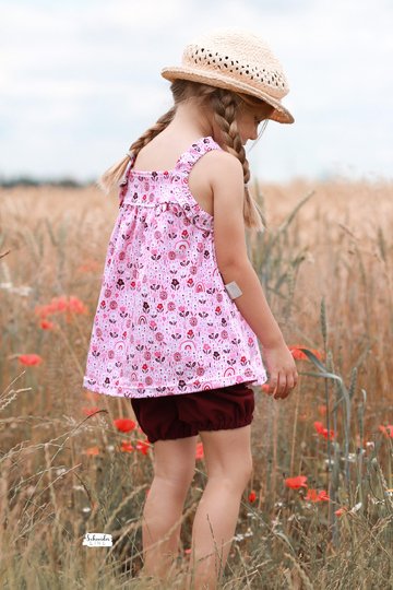 Es lässt sich perfekt als Top zu Bloomers oder als Tunika zu Leggings tragen. Du kannst die Tunikalänge auch um einige Zentimeter verlängern und das Ruffled Strap Dress als Kleid tragen.