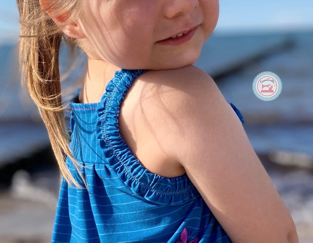 Das Ruffled Strap Dress ist ein verspieltes Träger Top für Mädchen und Teenies. Es ist locker geschnitten und bietet eine angenehme Weite an heißen Sommertagen.