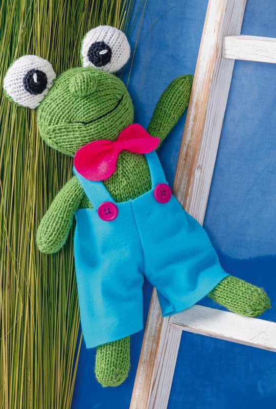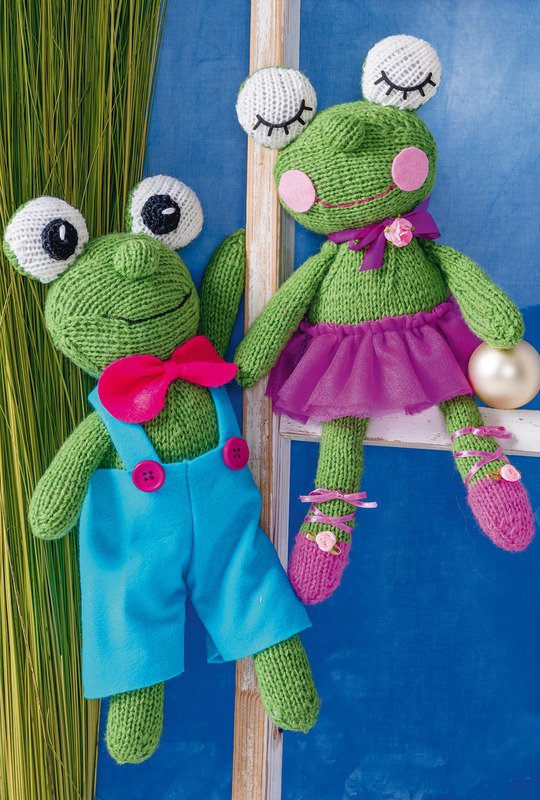 Dieses Froschpaar hat sich schick rausgeputzt und macht sich mit Fliege und Tüllrock bereit für den Valentinstag. Glatt rechts werden beide Frösche getrickt, bevor sie mit Füllwatte gefüllt werden und zum Schluss noch selbstgenähte Accessoires angezogen bekommen. Bei der Wahl der Kleidung kann man sich natürlich an die Anleitung halten, oder sich selbst einen witzigen Frosch-Look überlegen. Ob als Kuscheltier für kleine Frösche wie Neffen, Nichten oder Enkel oder als netter Geselle in der eigenen Wohnung, sind die Frösche gern gesehene Gäste.
