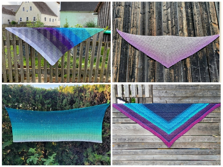 Du bekommst hier ein Häkelanleitungs-Set für 4 verschiedene Tuchformen: