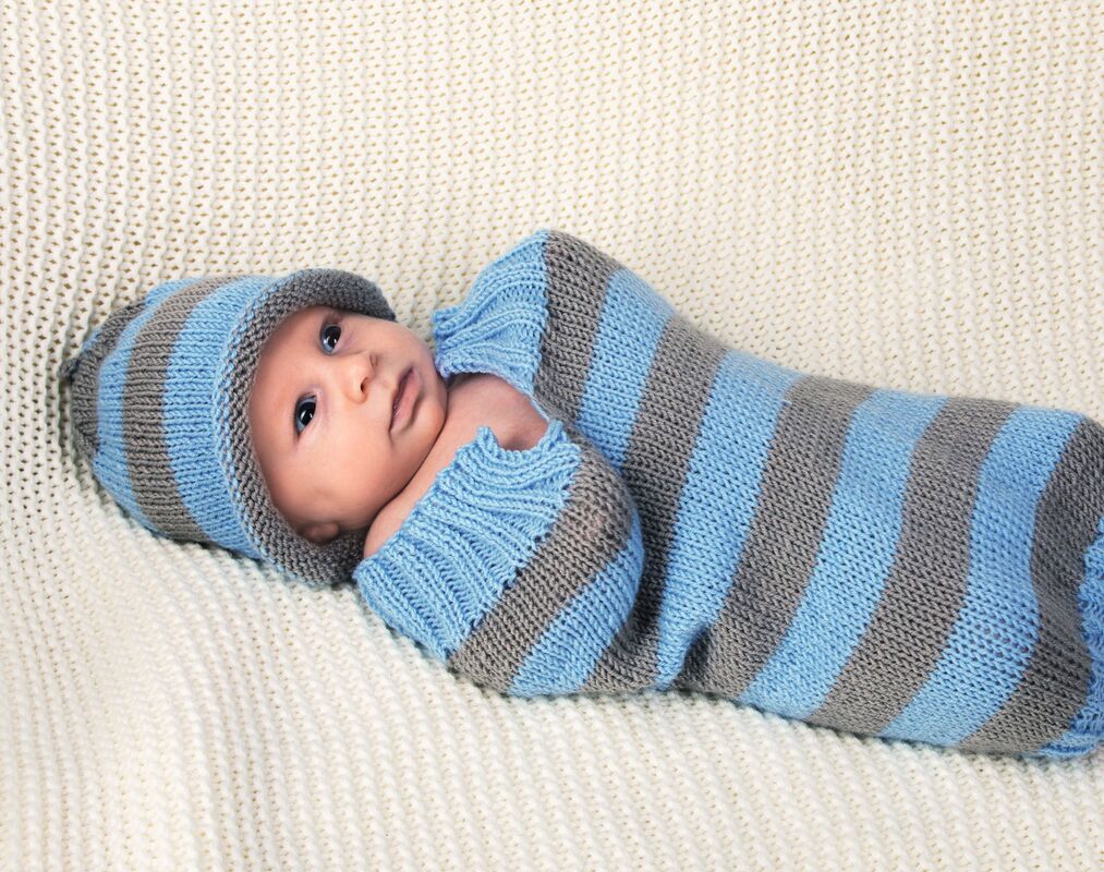 Dieses simple, gestreifte Baby-Set ist einfach ein absoluter Traum und die absolute Comfort-Zone für Neugeborene! Eingepackt wie in Wolken findet in diesem Pucksack jedes Baby in den Schlaf. Die zarte Wolle liegt angenehm auf der Haut der Babys und die etwas engere Form lässt jedes Baby pure Geborgenheit verspüren. Das dazu passende Mützchen schützt und wärmt den kleinen Kopf der Neugeborenen.