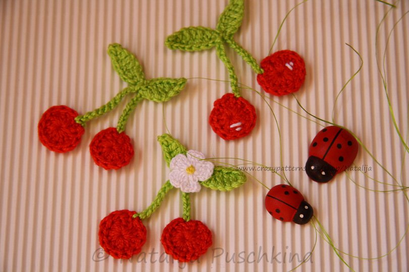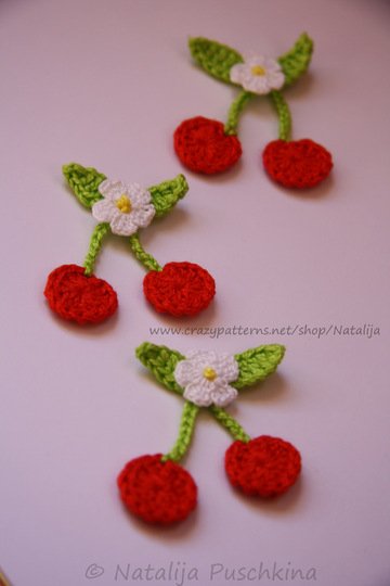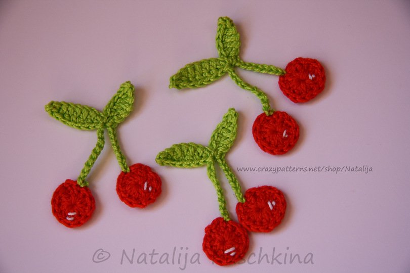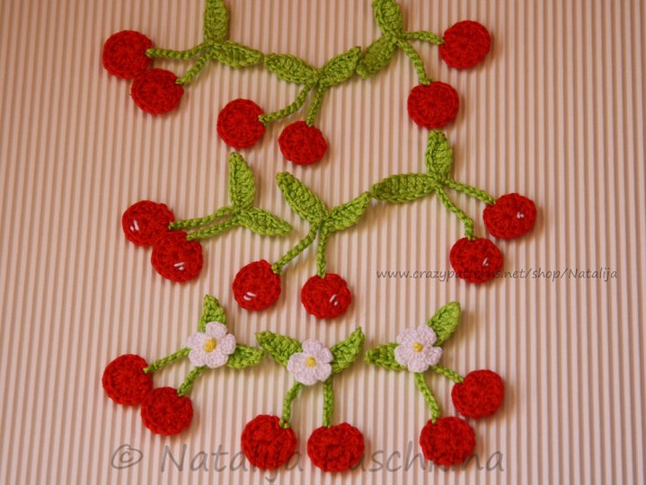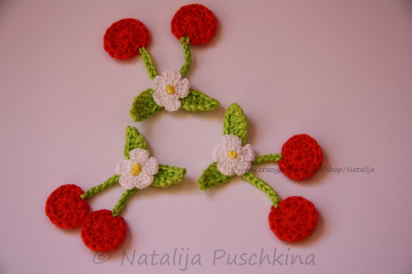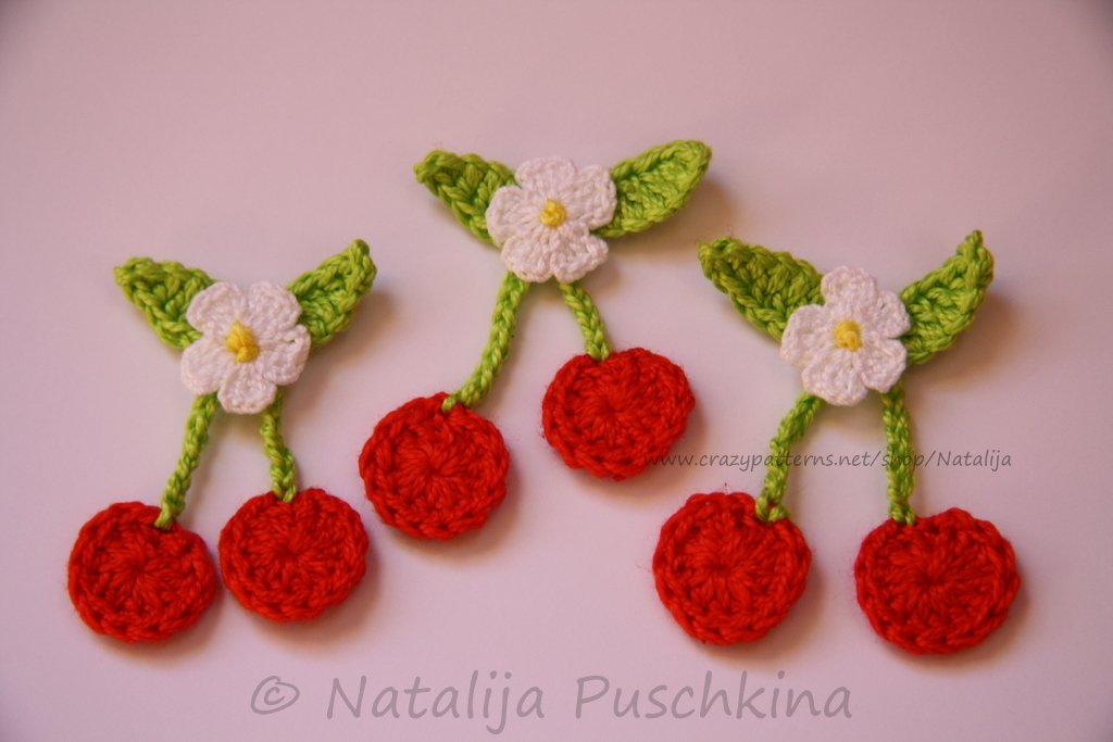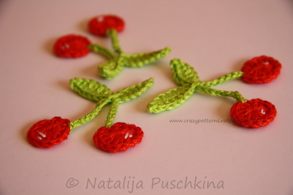 Verkauf der von Dir hergestellten Kirschen ist möglich: Du darfst die Artikel, die Du mithilfe meiner Anleitung zum Häkeln von Kirschen gefertigt hast, in beliebiger Stückzahl gewerblich verkaufen. Bitte den Hinweis: „Angefertigt nach dem E-Book von Natalija Puschkina https://www.crazypatterns.net/de/store/Natalija“ dazusetzen.