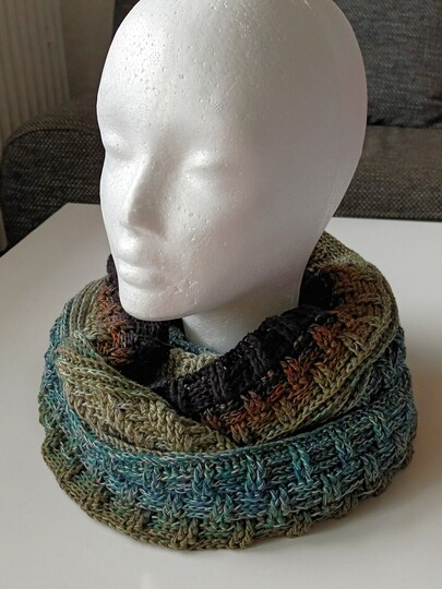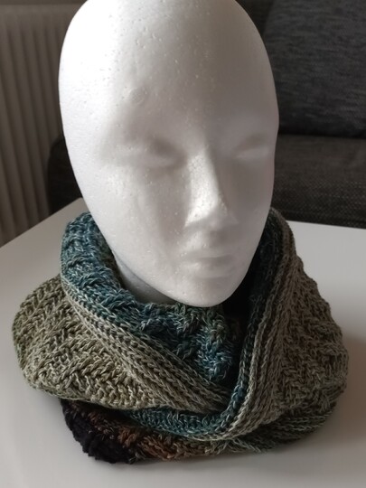 Der Loop wird nach meinen Angaben ca. 26cm breit und 140cm lang (Umfang).