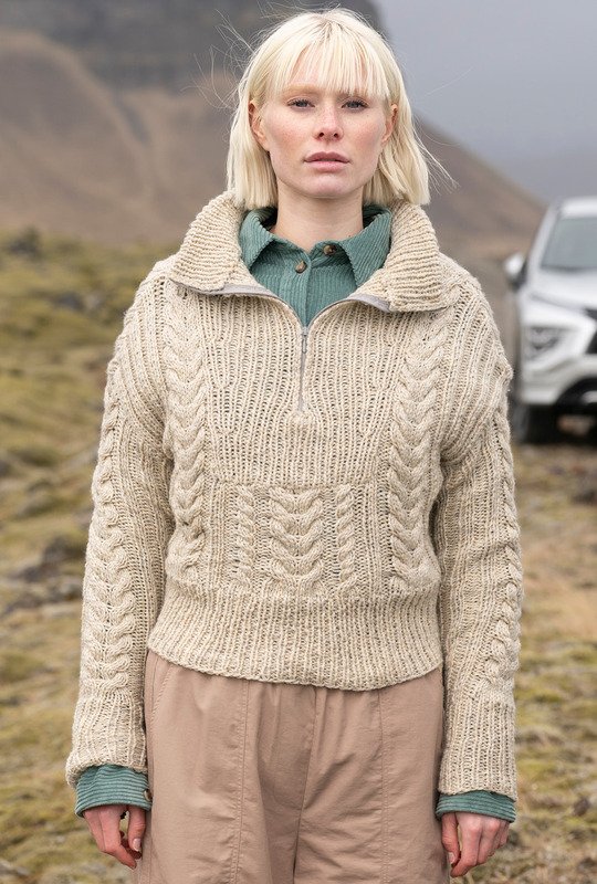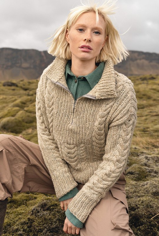 Der Troyer ist ein Pulli, der gerne von Fischern und Seeleuten getragen werden. An kühlen Herbsttagen ist er aber auch für dich genau das Richtige. Er hat einen hohen, nach innen umgenähten Kragen, einen Reißverschluss und ist aus griffiger Schurwolle gestrickt. Außerdem zeichnet er sich durch ein markantes Zopfmuster aus, das mit elastischen Rippenstrukturen kombiniert wird. Die neutrale Beige-Nuance passt perfekt zu jedem Outfit und kommt auch in der nächsten Saison nicht aus der Mode.