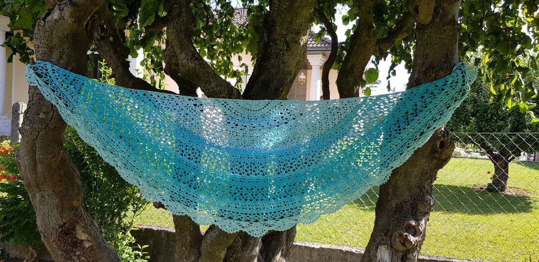 Tuch "Triss" ist ein halbrundes Sommertuch, schön luftig und perfekt für den Sommer geeignet.