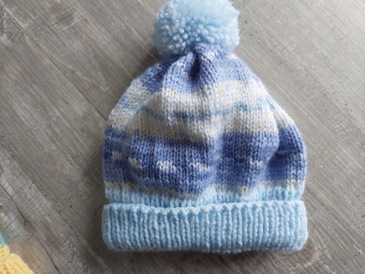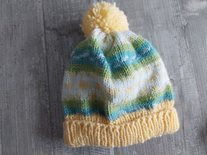 Diese Babymütze wird ausschließlich mit rechten und linken Maschen gestrickt und ist somit leicht nachzuarbeiten.