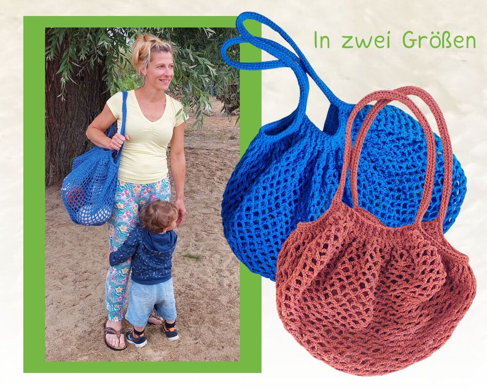 Mit der schriftlichen und detaillierten Anleitung zum Häkeln, kannst du dir Netztasche in zwei verschiedenen Größen anfertigen.