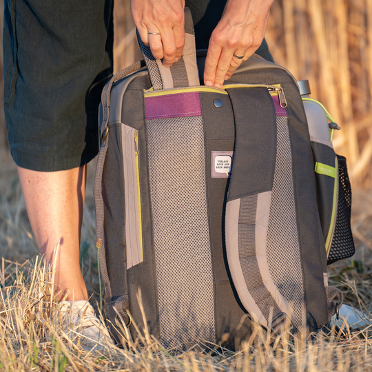 Verstaue die Rucksackträger einfach im Trägerfach. Dieses wird zusätzlich mit einem Druckknopf verschlossen, sodass es nicht offen steht. So kann es gleichzeitig auch als Fach für Zeitschriften oder Ähnliches verwendet werden.