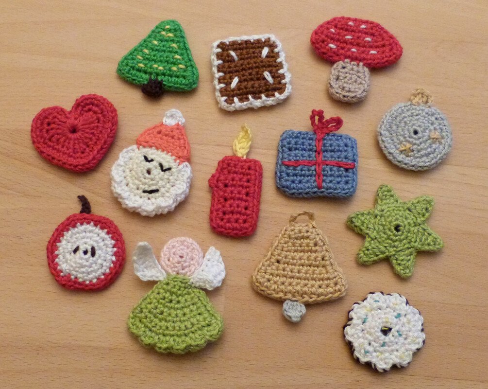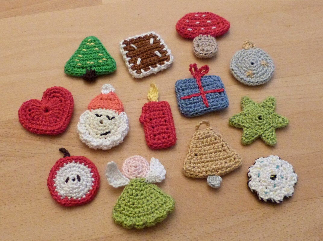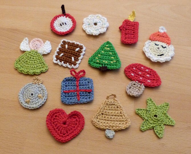 Bei Verwendung von Baumwollgarn mit einer Lauflänge von 125m/50g und Nadelstärke 3 werden die Motive ca. 4 - 6,5 cm groß.